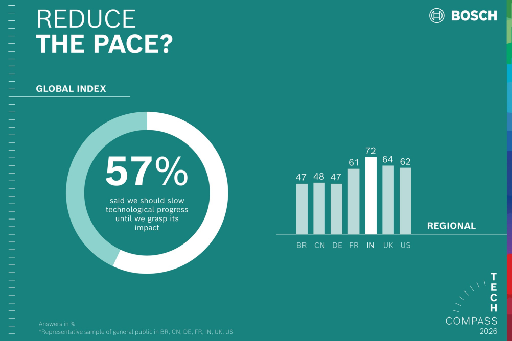 Tento pozitivní postoj je doprovázen současným nárůstem únavy z pokroku. Podle průzkumu Bosch navzdory velkým nadějím vkládaným do AI panují také obavy z jejího negativního dopadu – žádná jiná technologie není vnímána jako taková potenciální hrozba pro společnost. Celkově by 57 % respondentů uvítalo „tlačítko pauzy“, aby mohli lépe pochopit důsledky technologického vývoje.