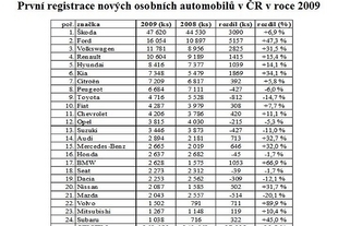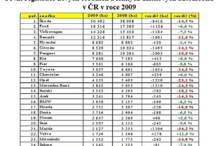 Pokles registrací osobních a lehkých užitkových vozů dohromady padá především na konto firemních zákazníků. Firmy vloni v důsledku hospodářské krize koupily o 19 620 aut (tj. o 17 %) aut méně než v roce 2008, přičemž celkový meziroční pokles trhu byl o 22 561 vozů.