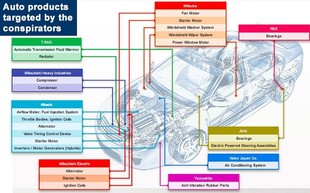 Devět japonských dodavatelů a dva vrcholní manažeři dostali v USA finanční pokuty v celkové výši 740 milionů dolarů a tresty vězení za dohody o cenách 30 produktů dodávaných americkým automobilkám.
