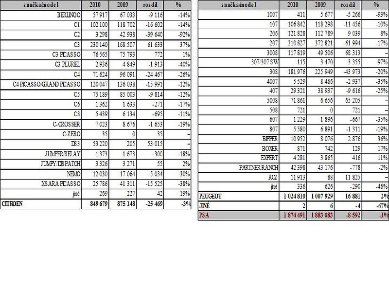 Mezi desítkou nejprodávanějších si nejvíce polepšil nový Citroen C3 s meziročním nárůstem prodeje o 34,4 %. Naopak nejvíce z vedoucích pozic ztrácel Fiat Punto/Grande Punto/Punto Evo. Ten v roce 2009 těžil ze šrotovacích prémií, ale vloni o něj zájem poklesl o 20,5 %. Podobně klesal zájem o Peugeot 207 (-16,9 %).