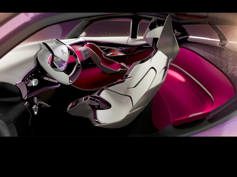 Interiér je zajímavý pojetím připomínajícím pařížský kabaret. Místo řidiče je ve stylu připomínajícím stíhačku, přičemž ovládací prvky jsou ve stylu nové exkluzivní řady DS. K té se koncept ostatně hlásí i barevným řešením.